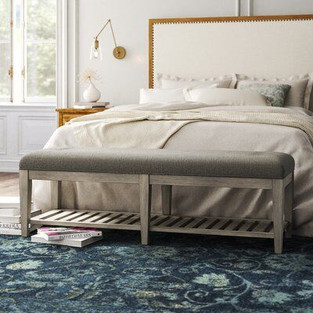 We are moving right along with these simple organizational items for all across the room. I have one more spot I want to add something pretty yet functional, the end of the bed. At the end of the bed I want to have a place to put on my socks and shoes as well as for it to have hidden storage because if you know me I need all the storage I can get!